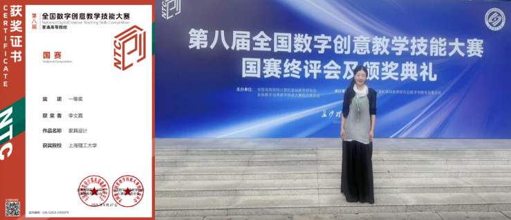 我校教师荣获第八届全国数字创意教学技能大赛全国一等奖近日,第八届全国数字创意教学技能大赛经过层层选拔和国赛现场答辩,我校出版学院李文嘉教授主讲的《家具设计》作品荣获国赛一等奖。本届比赛参赛作品总计4581件,有效作品3601件,参赛院校共574所、参赛教师5620人;国赛入围作品695件,涉及304所高校。 全国数字创意教学技能大赛(NCDCTS)由全国高等院校计算机基础教育研究会数字创意专业委员与全国数字创意教学技能大赛组织委员会联合主办,并经教育部中国高等教育学会认定,纳入《全国普通高校教师教学竞赛分析报告》及《全国普通高校教师教学竞赛榜单》。该赛事作为数字艺术、数字设计、数字创意、数字媒体及数字技术创新等领域内,规模宏大、跨学科、多专业、广泛参与的权威赛事,具有广泛影响力。 李文嘉教授以2025年度上海理工大学教师发展研究重点项目(CFTD2025ZD09)为依托,与上海市一流本科课程《家具设计》建设相结合,持续推进课程内容与教学方法创新,促进现代教育技术与课堂教学的深度融合。近年来,在学校的大力支持下,在“以赛促教、以赛促学、以赛促改、以赛促建”的导向下,广大教师积极投身课堂教学改革,推进现代信息技术赋能教育教学,不断提升综合素质、专业水平与创新能力,为教育教学质量的持续提高奠定了坚实的基础。